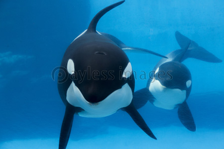 泳ぐシャチ オルカ の母子 の写真素材 イラスト素材 アマナイメージズ